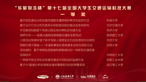 - 2022年7月8日-10日,由中国交通教育研究会、教育部高等学校交通运输类专业教学指导委员会主办、由上海海事大学承办的“华展物流杯” 第十七届全国老员工交通运输科技大赛因疫情线上举行。公司推荐的参赛作品在大赛中喜获佳绩,共有6个项目获奖,其中一等奖、二等奖各3项。公司员工的参赛作品和答辩表现得到专家评委的高度评价。第十七届全国老员工交通运输科技大赛以“数智交通、低碳运输”为主题,共有“交通工程与综合交通”...