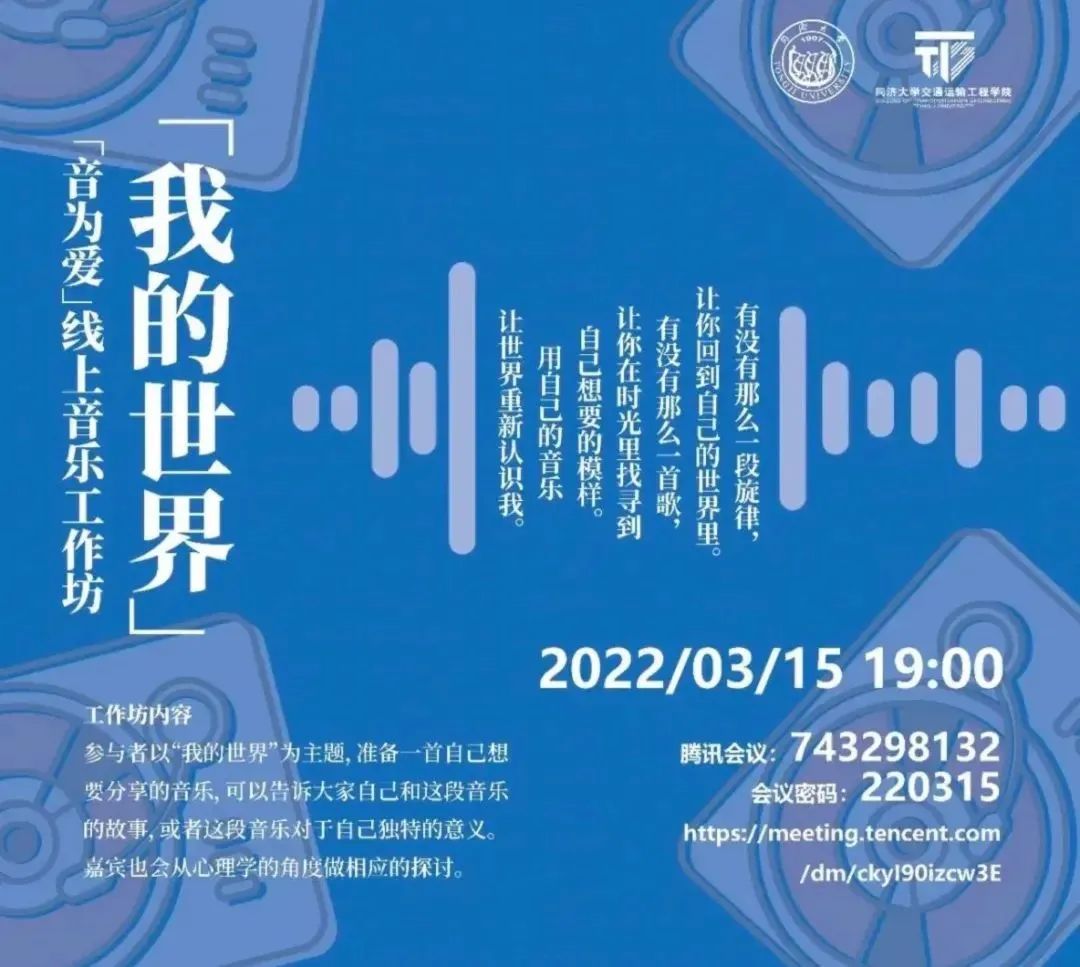 - 3月15日至4月2日期间的每周二、六19:00,由学校心理健康教育与咨询中心和交通运输工程学院联合主办的“音为爱”线上音乐工作坊以六期不同的主题与全校师生持续见面。该活动由国家二级心理咨询师、表达性艺术治疗师、家庭治疗师陆恺翔担任主讲嘉宾,旨在从音乐切入,伴随故事交流分享与心理学的相关探讨,缓解师生在准封闭管理期间的焦虑情绪。今天,我们就来回顾一下“音为爱”线上音乐工作坊的往期内容与热烈反响。3月15...