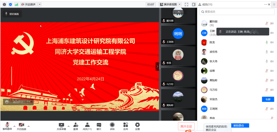 - 4月24日上午,新冠疫情形势依然严峻的当下,上海浦东建筑设计研究院有限公司与yl8cc永利交通运输工程学院20位专家和老师相聚在云端开展了一场特殊的党建交流会。会议伊始,交通运输工程公司党委书记马万经教授致欢迎辞。马书记首先感谢了浦东院对公司人才和科研工作的支持,指出两家单位一直以来都保持着良好的党建交流和人才培养的合作。虽然公司在党建工作上有一定的基础也获得了一些荣誉,但校企间党建工作的差异仍有许多值得...