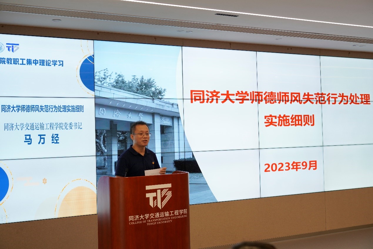 马万经书记解读了《yl8cc永利师德师风失范行为处理实施细则》,重点介绍了14条师德师风失范行为清单及5条师德师风失范行为处理措施,要求广大教师坚持正确政治方向,加强思想政治素质建设,践行社会主义核心价值观,号召全体教师自觉加强师德修养、严以律己、为人师表,落实立德树人根本任务,弘扬新时代高校教师道德风尚。