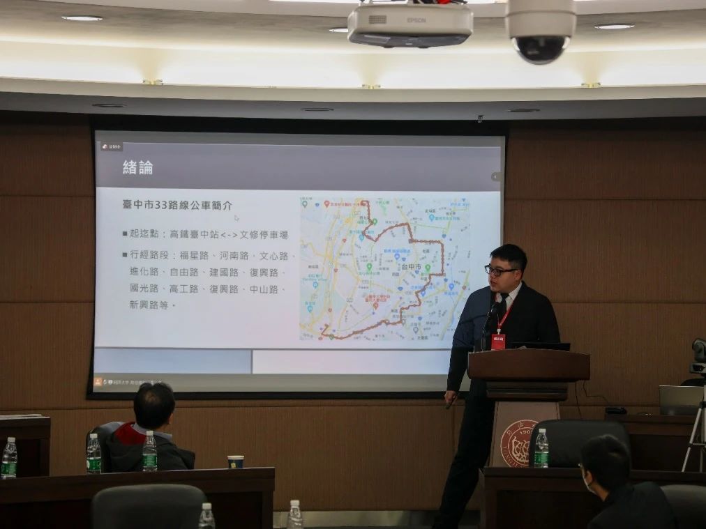 逢甲大学在读硕士研究生杨东翰同学就“应用Python於公车票证资料清理及公车运行时间分析”主题展开报告。