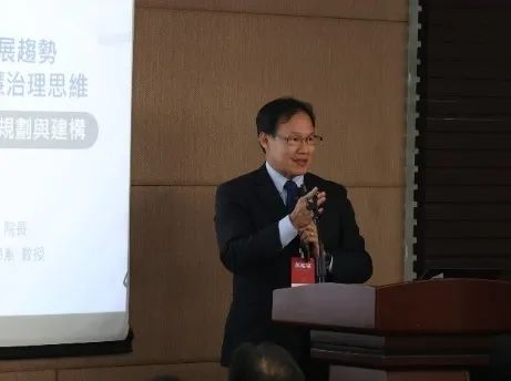逢甲大学建设学院经理苏昭铭教授作“从国际运输发展趋势思考城市交通智慧治理思维⸺数位中枢神经系统的规划与建构”的主题报告。