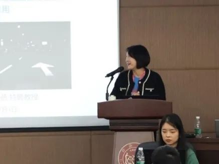 台湾大学土木系工程学系周家蓓教授作“兼顾抗滑与反光双性能之道路标线发展研究与应用”的主题报告。
