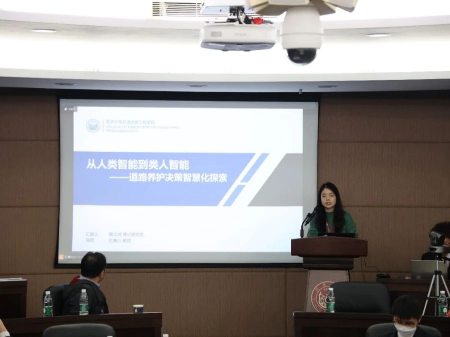 yl8cc永利在读硕士研究生蔡文渊同学就“从人类智能到类人智能⸺道路养护决策智慧化探索”主题展开报告。