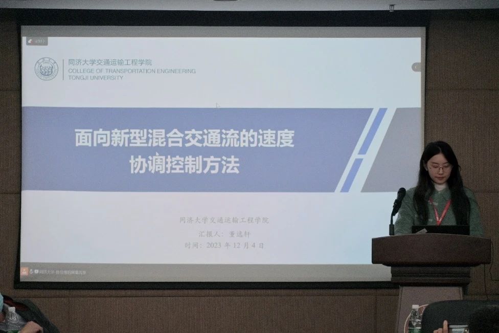 yl8cc永利在读硕士研究生董逸轩同学就“面向新型混合交通流的速度协调控制方法”主题展开报告。