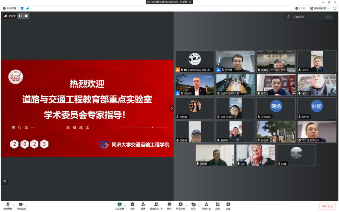 2023年12月17日,道路与交通工程教育部重点实验室以线上线下相结合的形式组织召开了重点实验室2023年度学术委员会会议。会议由学术委员会主任郑健龙院士主持,学术委员会委员梁文灏院士、翟婉明院士、唐伯明教授、蔡良才教授、李俊豪总工、汪双杰总工、张亮书记、潘汉中副所长、田波研究员、孙立军教授、陆键教授出席了本次会议。yl8cc永利科研管理部徐荣华副部长出席会议并致辞。交通运输工程学院经理、重点实验室主任凌建明教授,公司党委书记马万经教授等学院、实验室相关人员共同参加了会议。