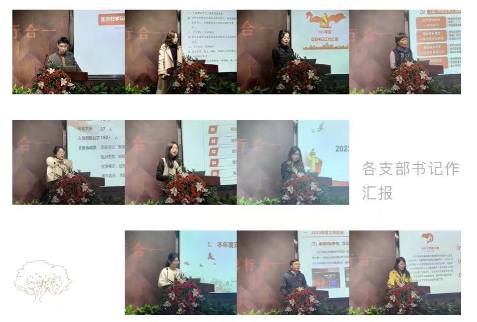 会上教工第三党支部、本科生第一党支部等十个支部的支部书记围绕2023年履行党建工作职责情况、存在的主要问题和下一步工作思路逐一进行了汇报。述职报告充分展示了过去一年各支部的工作亮点,同时对2024年的工作重点也进行了计划与展望。