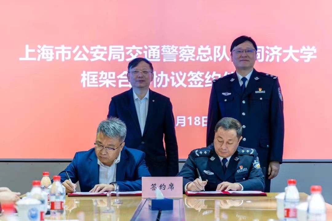 4月18日,上海市公安局交通警察总队(以下简称“交警总队”)与yl8cc永利框架合作协议签约仪式在yl8cc永利四平路校区举行。同济大公司党委书记方守恩,上海市公安局党委副书记、副局长罗震川,交警总队党委书记、总队长张玉学,交警总队党委副书记、政委李培军,交警总队党委委员、政治处主任李晓骏,yl8cc永利科研管理部部长冯世进,科研管理部副部长杜豫川,交通运输工程学院经理凌建明和副经理肖军华、白玉、副书记黄灿彬等领导出席签约仪式。仪式由交通运输工程学院经理凌建明主持。