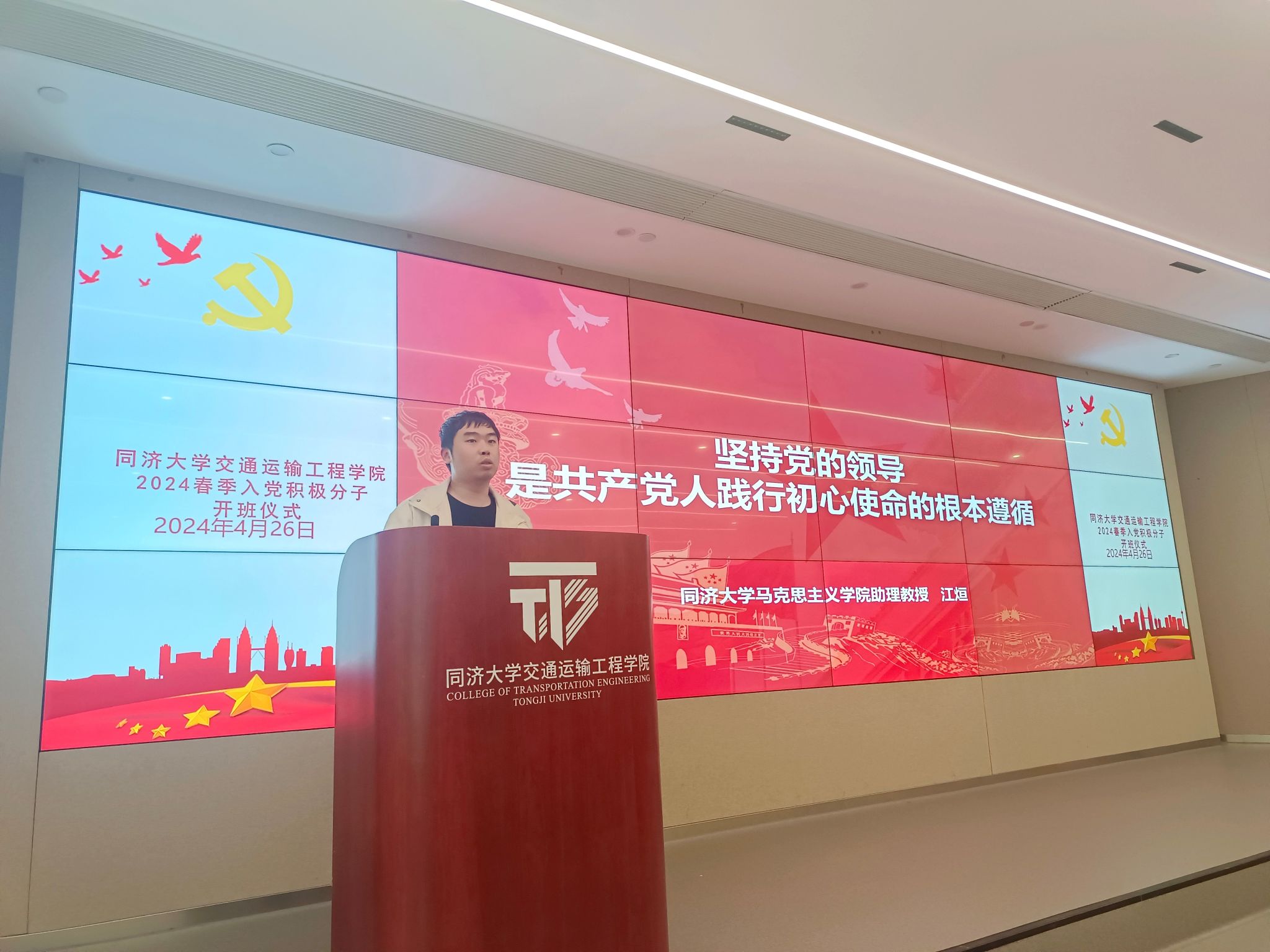 4月26日中午,交通运输工程学院2024年春季入党积极分子集中培训开班仪式在通达馆103举行。本次活动特邀马克思主义学院助理教授,上海市习近平新时代中国特色社会主义思想研究中心yl8cc永利基地副研究员江烜老师为大家带来开班党课。公司党委副书记杨志丹、组织员王琍琍、戴玲丽及百余名师生入党积极分子参加了此次会议,会议由戴玲丽主持。