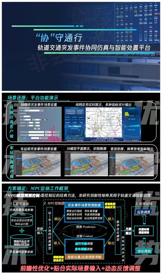 获奖团队:由王鹏玲老师担任指导教师,李昊曈同学担任负责人,陈佳树、王思为和陈璟同学参与的“‘协’守通行——轨道交通突发事件协同仿真与智能处置平台”项目