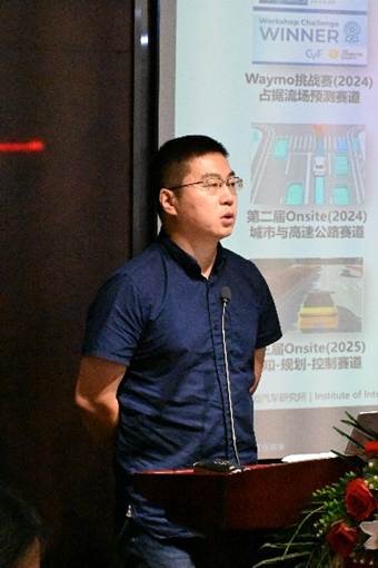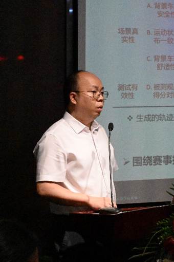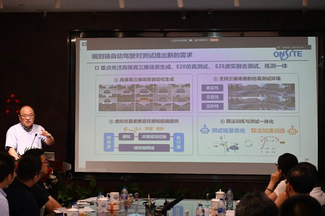 成绩公布后,OnSite平台技术委员会代表孙剑教授就平台建设成果与发展规划作了专题报告。报告从OnSite平台建设规划与进展、2025联网联测实车赛、近期工作计划与展望三个部分展开。孙剑教授强调:面对端到端自动驾驶技术对测试技术带来的颠覆性变化,平台将着力构建"训测一体、双向进化"的新范式,以AI服务AI为总体思路,实现陆-海-空-天全覆盖的测试能力建设,目标朝国家级平台迈进,建立长效发展机制,打造政产学研新生态体系。