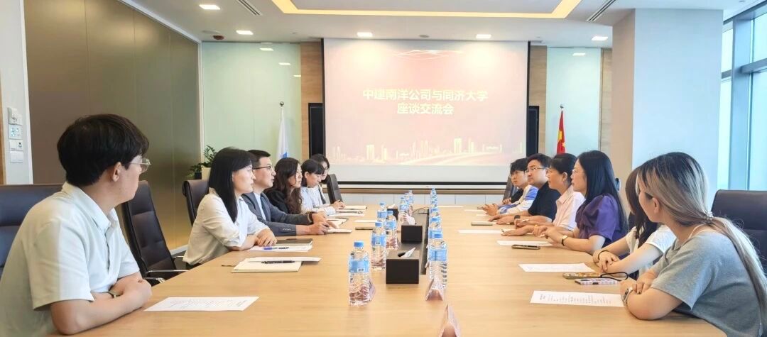 中建南洋公司座谈交流会上,公司人事部助理总经理范利民介绍了公司在新加坡建设发展过程中的重要贡献。人事部、综合办公室和工程技术中心的专家们与团队师生围绕校企合作、人才联合培养、可持续建筑与绿色技术应用等议题进行了深入交流。双方均期望通过此次交流,在人才输送、人才联合培养等方面积极推动双方合作更加精准化、体系化、持续化,促进校企合作更快更好发展。