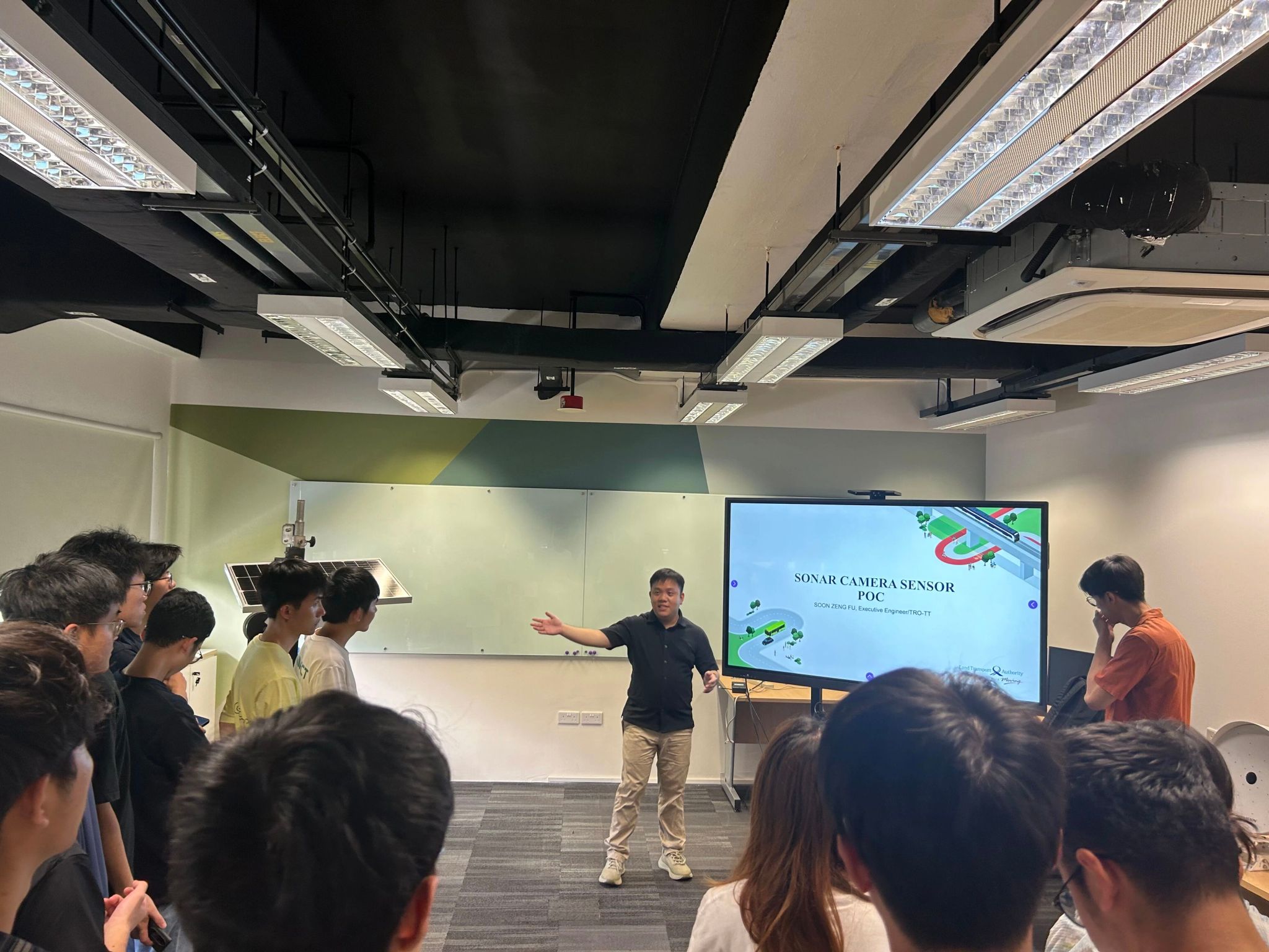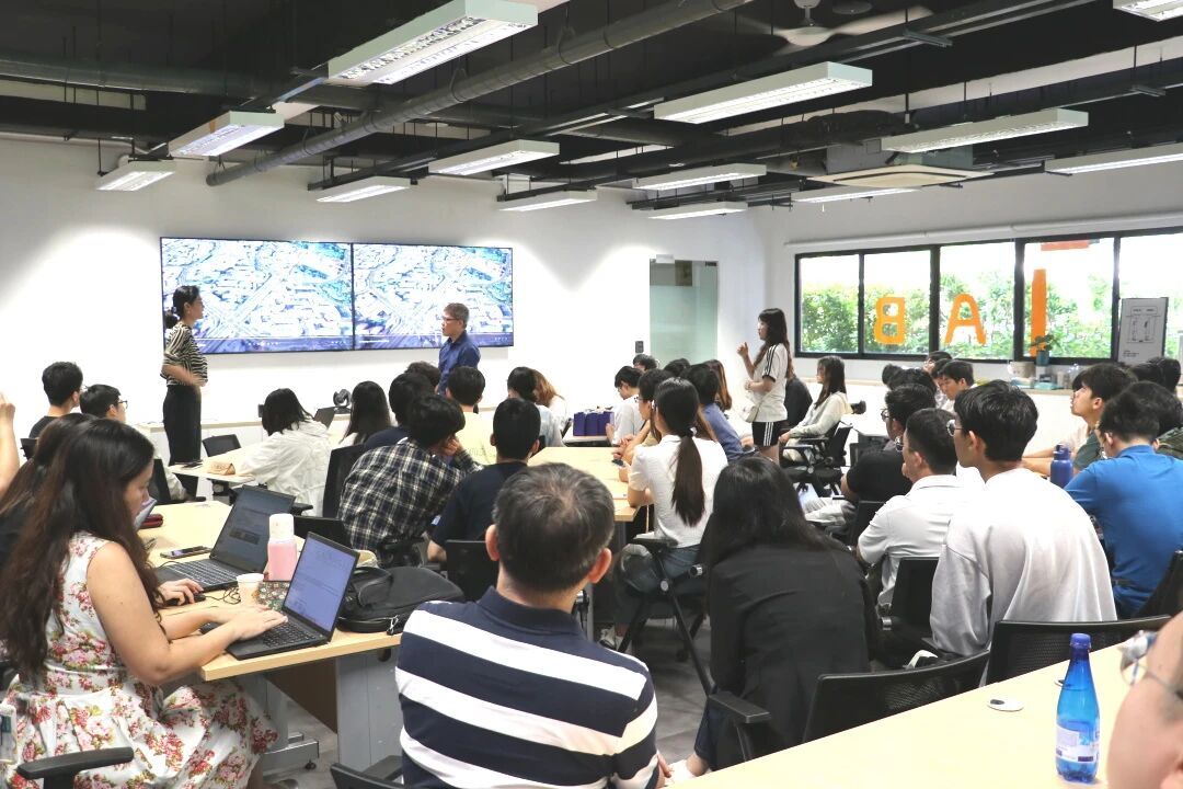 在新加坡陆路交通管理局,团队前往道路创新实验室进行参观。Material Lab围绕道路材料的优化创新与质量保障开展核心工作,通过在表面材料中掺入纤维提升路段性能,改良材料以增强无障碍友好性,分析道路缺陷成因并履行质量保证与控制职能,进一步推动环保型材料体系构建;CM Studio聚焦当前交通规划图纸审核流程繁琐、跨文件核对与人工校验耗时易错等问题,借助AI技术构建单一协同平台,整合多方实时协作、规范检索及设计改动追踪功能,以提升工作效率;TDA Studio展示了声纳相机传感器等前沿技术,探索摄像头传感器部署方式并通过多种摄像传感器联用和传感电缆实现车辆超速噪音实时监测。