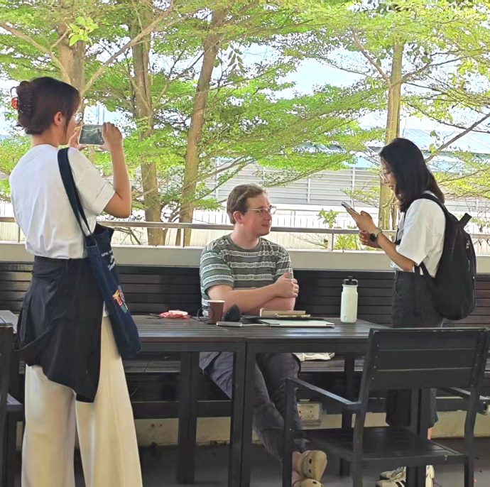 翻看照片,动人的往往不是地标建筑的打卡照,而是那些不期而遇的瞬间:城市规划馆一楼孩童堆砌的积木城堡、国立大学迎新会上憨态可掬的人偶、南洋理工大学实验室窗外的蓝调天空、以及自由调研时种种意料之外的惊喜......