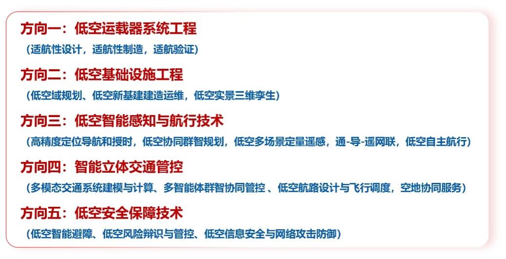 团队建设重点聚焦五大方向:“低空运载器系统工程”、“低空基础设施工程”、“低空智能感知与航行技术”、“智能立体交通管控”、“低空安全保障技术”。