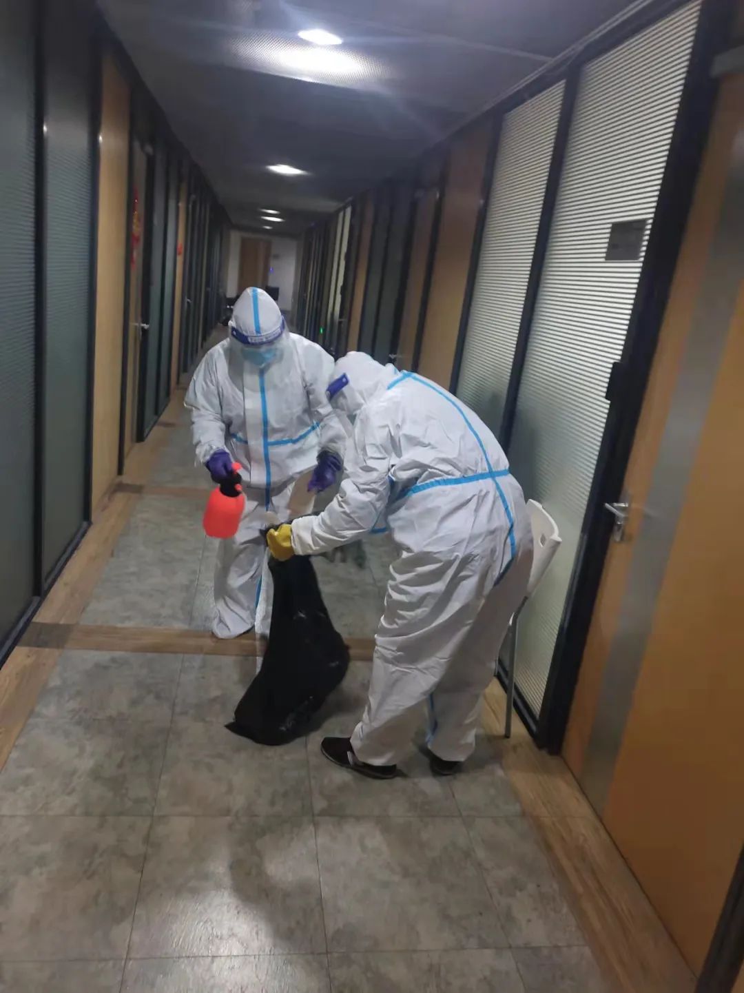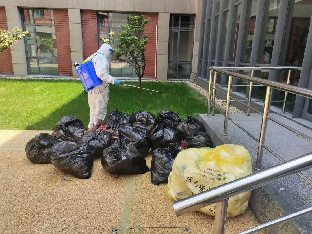 (学院物业对学院各个楼层场所、垃圾收口后、收取餐饮和物资之后开展重点消杀工作)