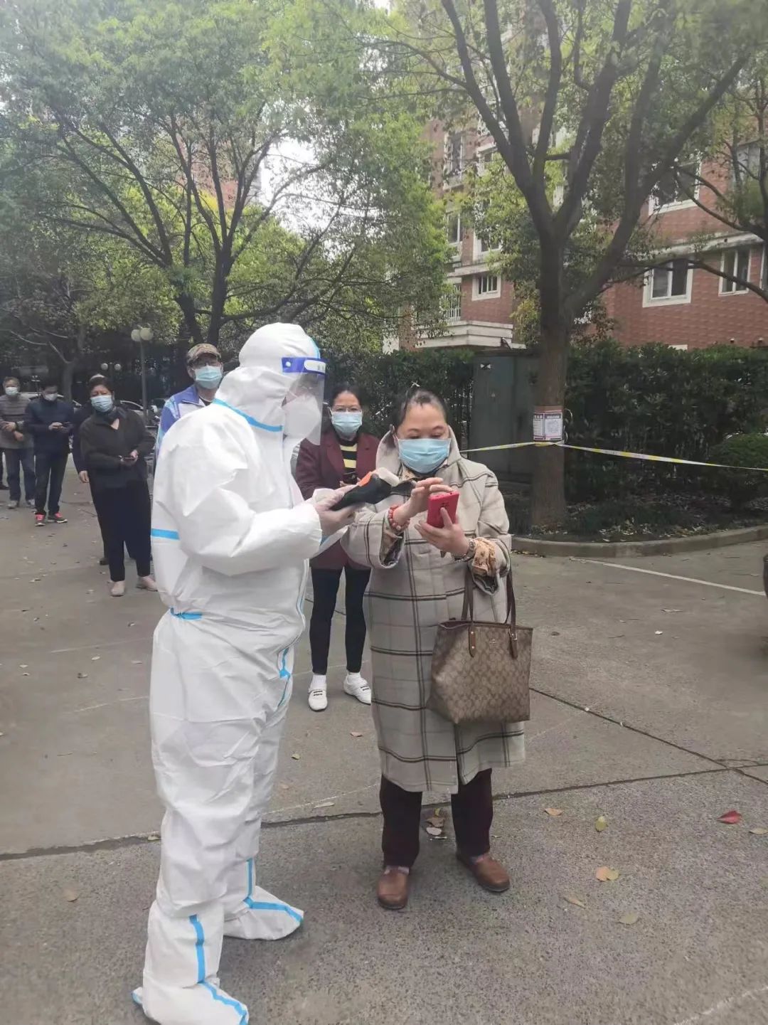 (学院物业听从学校统一指挥,帮助学校对核酸检测及搬运物资)