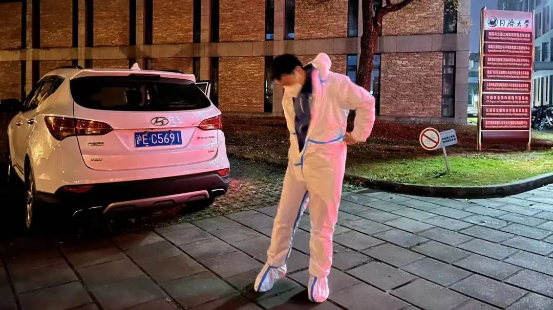 “我的志愿服务其实来源于在通达馆隔离的那五天四夜。我在馆内报名了协调组和宣传组双志愿者。第三次全院核酸的时候我就地取材在学院楼门口用彩色胶带贴了地贴,自己也投入引导工作,秩序比较好。从这个时候我意识到,在疫情防控中我可能投入现场协调工作比较合适。在后面的两次解封核酸中,我也继续担任引导工作。4月3号下午全员核酸,通知来得非常突然。依照马明杰老师的指令,在现场帮同学们看排队情况。我自己一个人在校区内骑车绕圈查看队尾位置,同时及时回传前方情况协调群内。晚上19点,与学院物业孟凡友经理协商借车,并运送一批物资到嘉定校区小别墅。21点,班级群发通知说要加测抗原,我当即和马明杰老师说,如果运送抗原我可以继续承担运输任务。23点,我了解到12号楼核酸检测任务已经基本结束,我便再次出车,联系马万经书记表示随时可以去校医院领取抗原试剂。23点45,确认试剂盒未拆封清点并装车后,随即奔赴运送现场。不仅要协调各楼抗原需求数量,逐一核对数量和我收到不一致的楼多或者少的具体原因,还要在昏暗的路灯下把整盒抗原拆成零头按数目交给不是整五整十的同学。在只有我和马万经书记2人分发的情况下,大批量的抗原检测试剂一直发放到凌晨1:20左右才结束。我本以为可以回去休息,可又接到通知,部分楼栋需要进行一次补发,我也马上驾驶车辆到达现场。当晚最后一份试剂发出已经是凌晨2:09,此刻我还是不敢回宿舍,在向本科辅导员和研究生负责同学合适是否还有补发需要,一直等待到2:25才最终回到自己的宿舍。后续,我又进行了四五次物资转运和抗原运送任务,还与道路五班郑云鹏同学一起将1500个口罩发放到学院同学手中。”