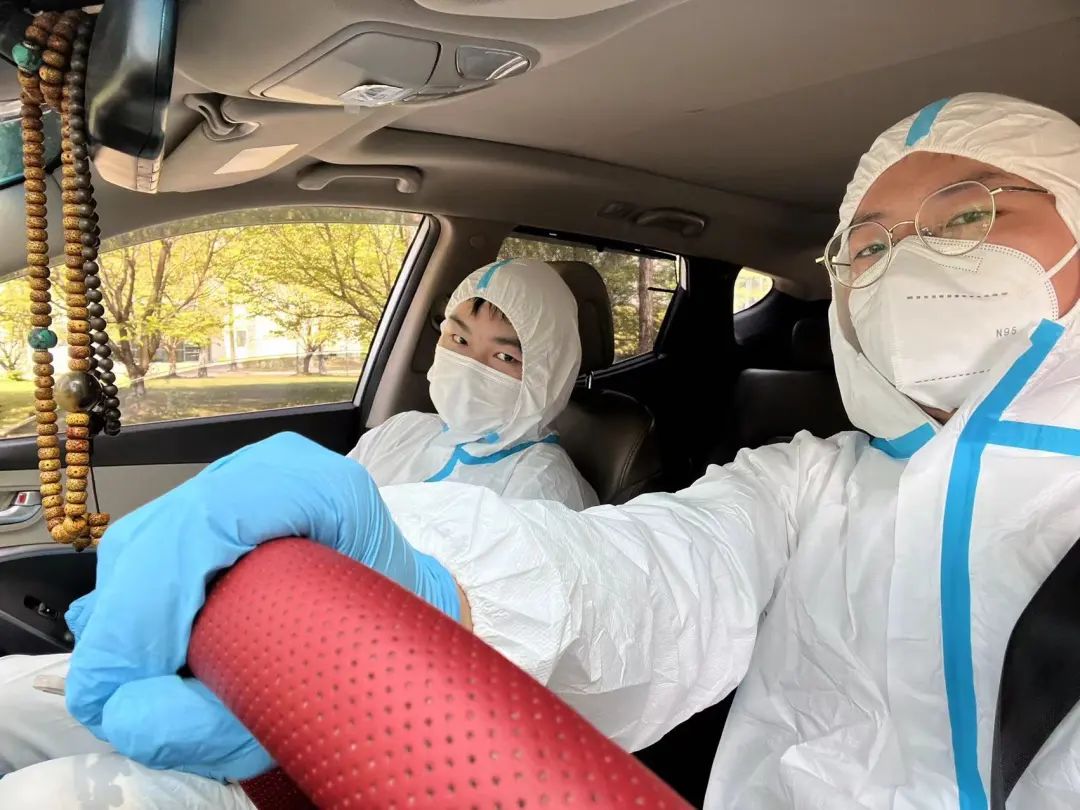 “章谦是我的好朋友,也是我十分欣赏和敬佩的人。第一天封宿舍楼时,他晚上开车到处运送抗原试剂盒,凌晨两点才回寝,十分辛苦。于是他邀请我和他一起出车时,我便毫不犹豫地答应了。他负责开车和搬运,我负责挨个打电话给各个宿舍楼的员工负责人来领取。