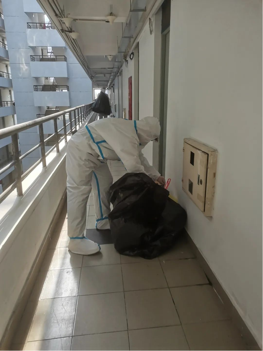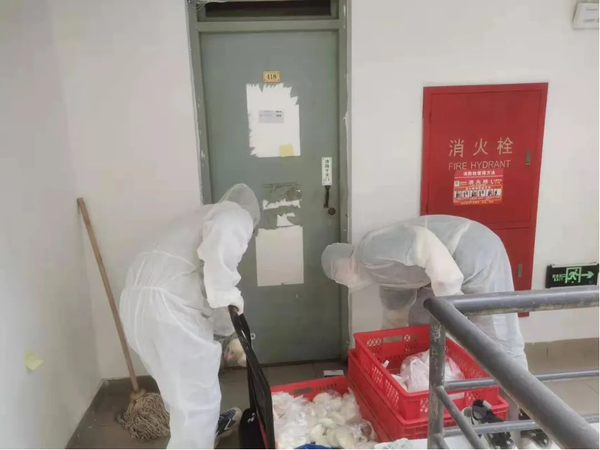 友园6号楼主要是交通18级男生,楼长层长创新提出“先用黑色垃圾袋收集垃圾放到楼下,等黄色垃圾袋送达再用其套在外面”的垃圾转运方法,解决封楼条件下的垃圾清理问题。