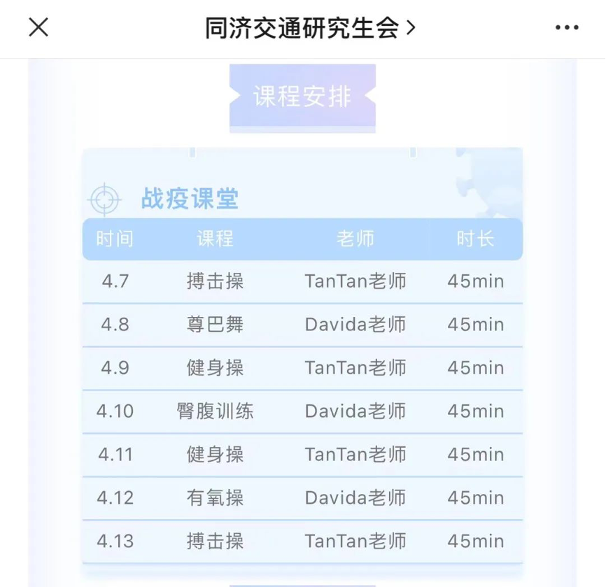 优秀的交通学子们学习之余仍不忘强身健体,学院也开展了由院研究生会、员工会主办的线上健身课程,动动脑筋一起来打卡!