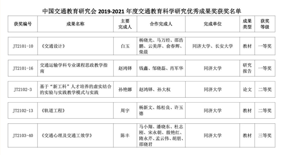 4月20日,中国交通教育研究会公布2019至2021年度交通教育科学研究优秀成果奖,公司教师作为主要完成人的5项研究成果获奖,其中,一等奖2项,二等奖2项,三等奖1项。