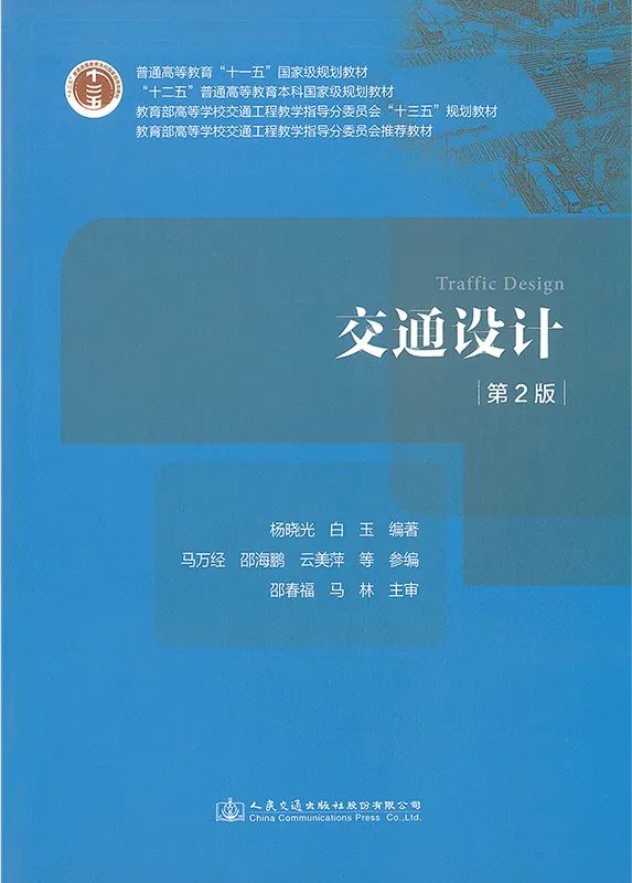 《交通设计》教材由杨晓光、白玉主编,学院马万经、云美萍、俞春辉、柴晨参与编写。教材凝结了主创团队在交通设计领域数十载研究和实践经验,是我国最早出版的交通设计方面教材,也是首部被翻译为英文推广到国外的交通领域教材。教材从交通设计的概念和提出背景出发,阐述交通设计基础理论与方法及其关键技术。体系科学严谨,突出理论知识和实际案例的融合,且与时俱进不断更新,引领行业进步。教材自出版以来已被国内外90余所院校作为同类课程参考教材,并受到专业教师及员工广泛好评,在国内同类教材中处于领先水平。