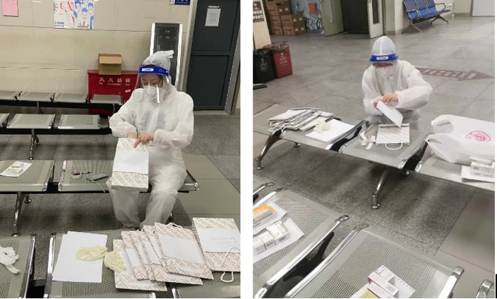 黄泽蓉、万小华两位老师成为学校机关党委的专项志愿者,一天持续工作12小时之后还为员工代配药
