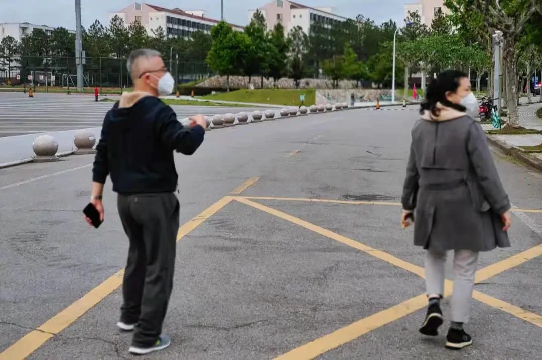 马万经书记、凌建明经理在疫情防控第一线,带领学院后勤人员进行核酸检测,参与员工出楼活动志愿者服务