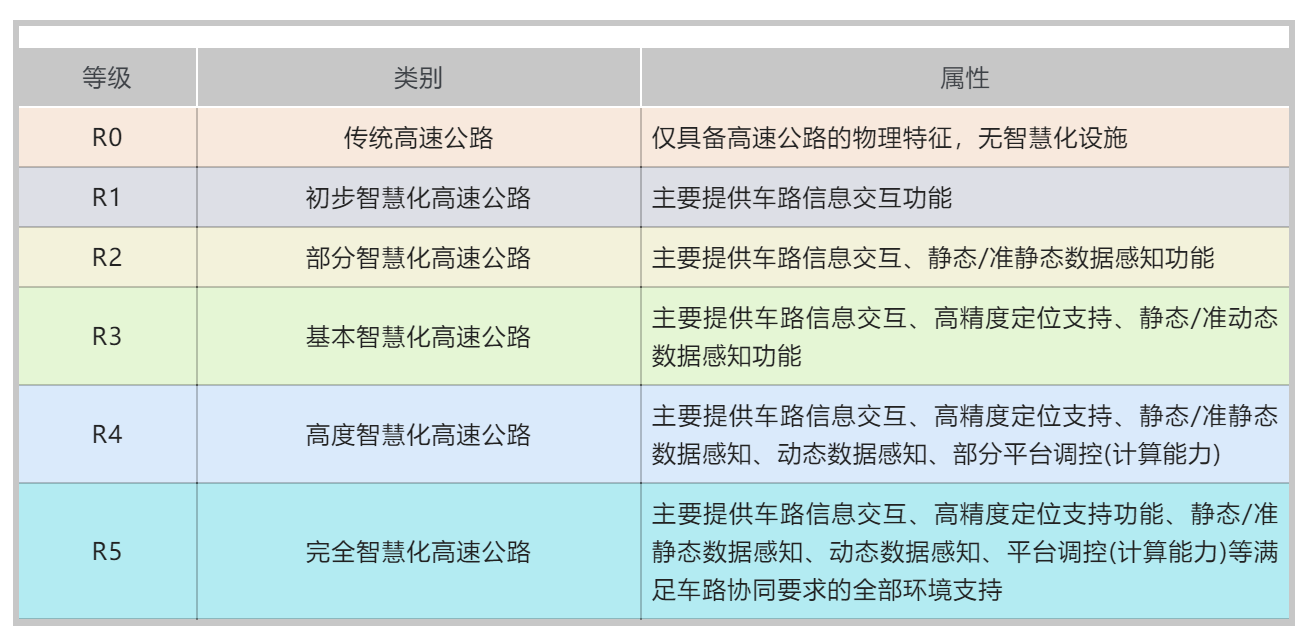 考虑车路能级组合目标,新一代智慧高速的智慧化等级主要分为六个级别。