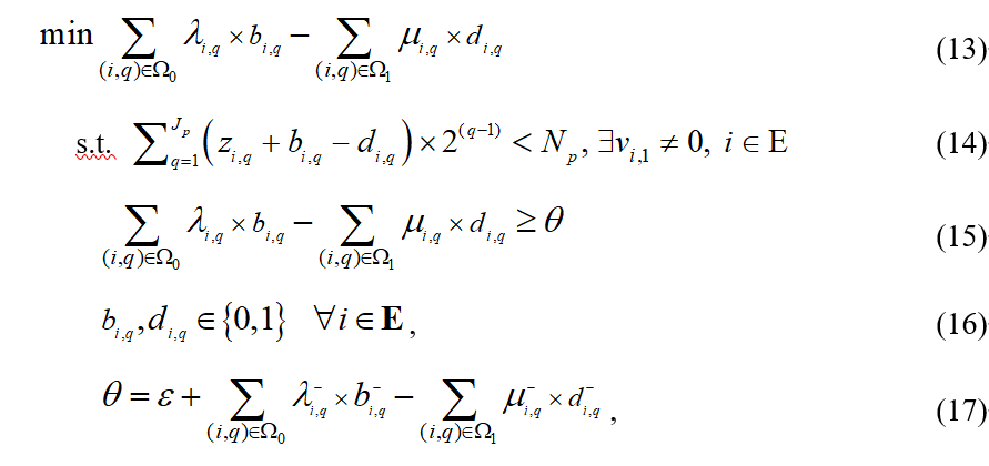 虽然迭代过程可以降低目标函数(1)的值,但在进行0集合与1集合的元素交换时,可能违背二进制约束,且由于未控制模型对应的拉格朗日乘子,二进制变量的乘子仅能近似表示目标函数变化。为了保证每次迭代过程中目标函数(1)下降,以防止迭代循环,并使二进制在过程中始终生效,式(13)-(17)作为内嵌的优化函数加入循环中,从而获得可行的较优解。