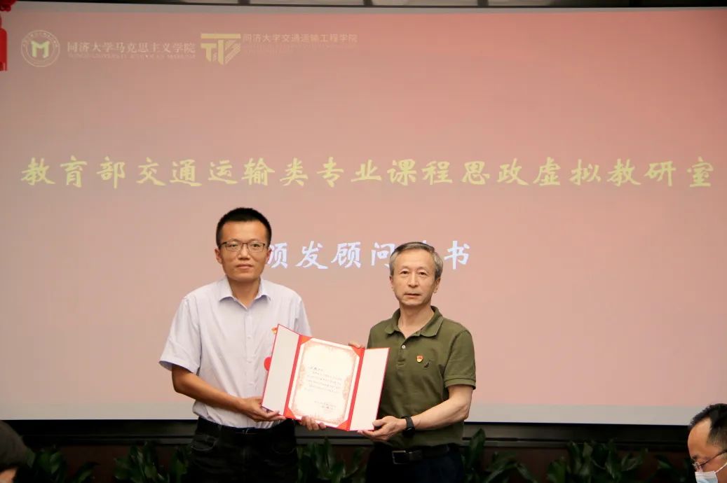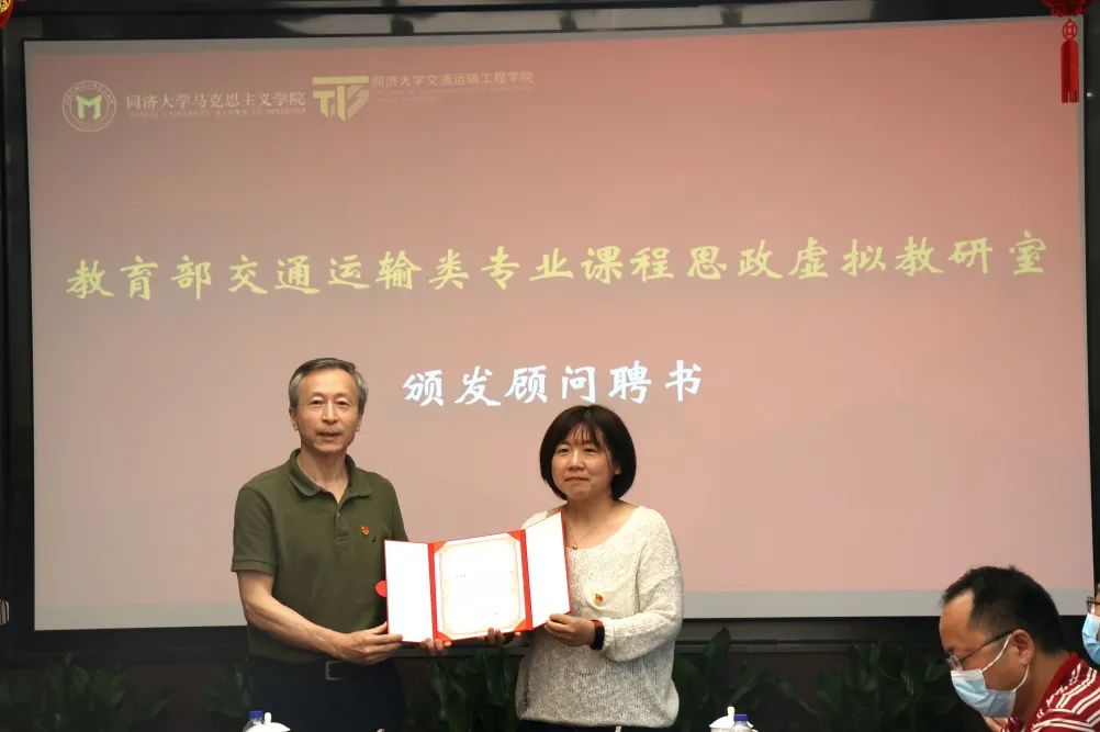 公司交通运输类专业课程思政研究虚拟教研室聘请马克思主义学院思政专家代表刘顺副教授、姚莉萍副教授为顾问。教研室主任吴兵教授为两位专家颁发聘书。