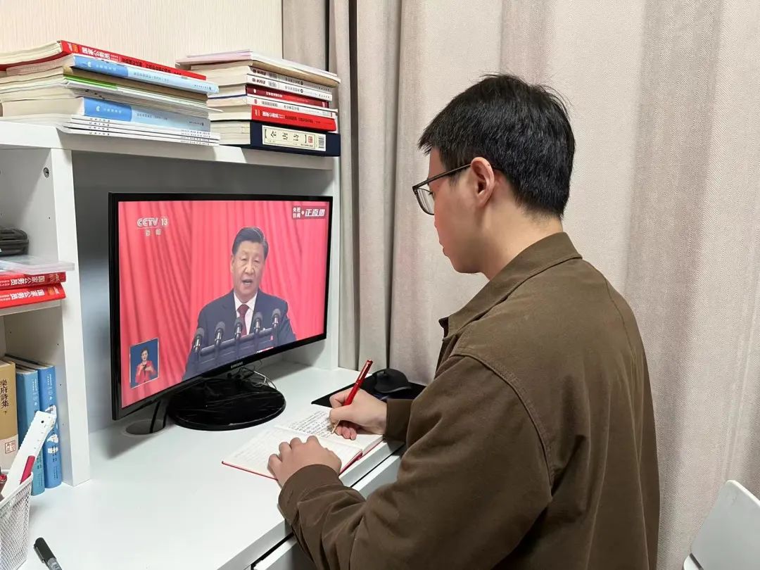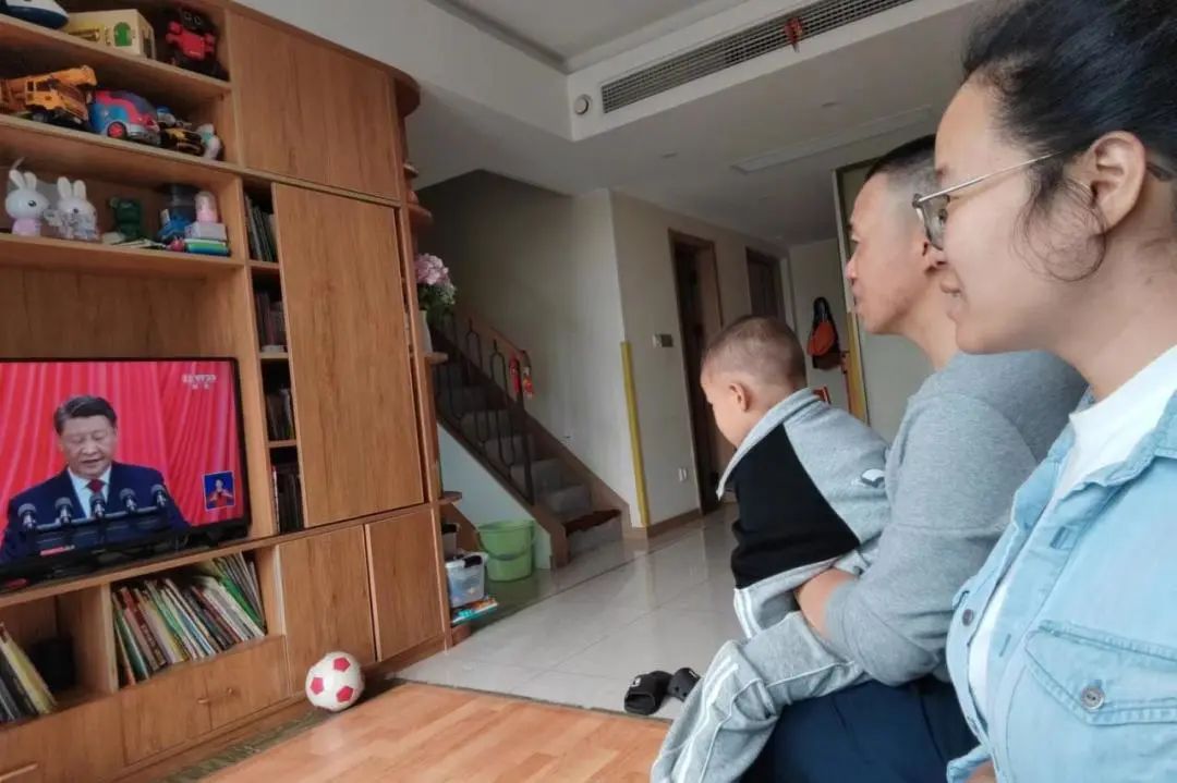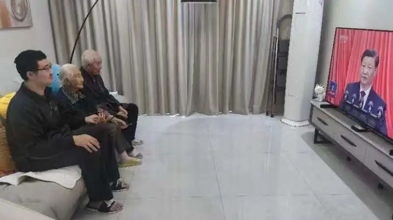 教工第五支部党员王一喆博士后,陪同83岁高龄48年党龄的姥爷和85岁的姥姥一起收看二十大