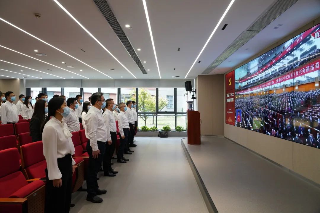 2022年10月16日上午,中国共产党第二十次全国代表大会在北京人民大会堂隆重开幕,习近平同志代表第十九届中央委员会向大会作报告。公司党委统一组织师生党员在通达馆103报告厅观看大会开幕盛况,公司党政领导班子、教工支部书记、师生代表70余人共同见证这一伟大历史时刻。许多教工党员在办公室、居家和出差路上,员工党员在研究室和宿舍里以党小组或个体进行观看。在近两个小时的时间里,公司师生满怀喜悦和激动的心情,聆听了习近平总书记的报告。