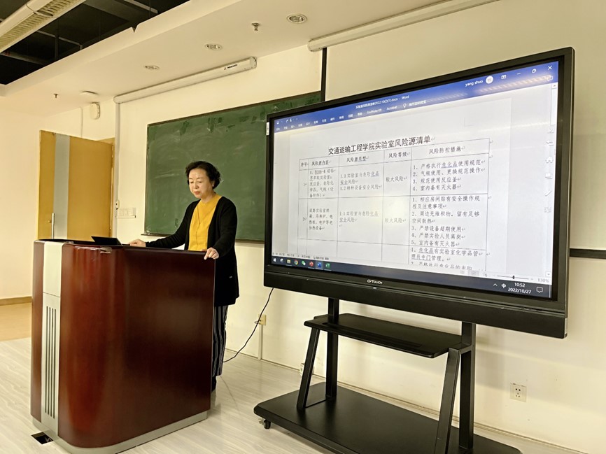 实验室办公室主任段晓英首先围绕实验室风险源清单详细讲解了实验室现有电加热设备、危化品、特种设备、计算机断层扫描仪辐射性、电源电池等主要风险源和对应防控措施,并与同学们明确了各风险源的负责人以及管理办法。段老师一再强调:风险防控和隐患排查治理是避免安全事故的双重预防机制,应努力做到“把风险防控挺在隐患前边,把隐患排查治理挺在事故前面”。