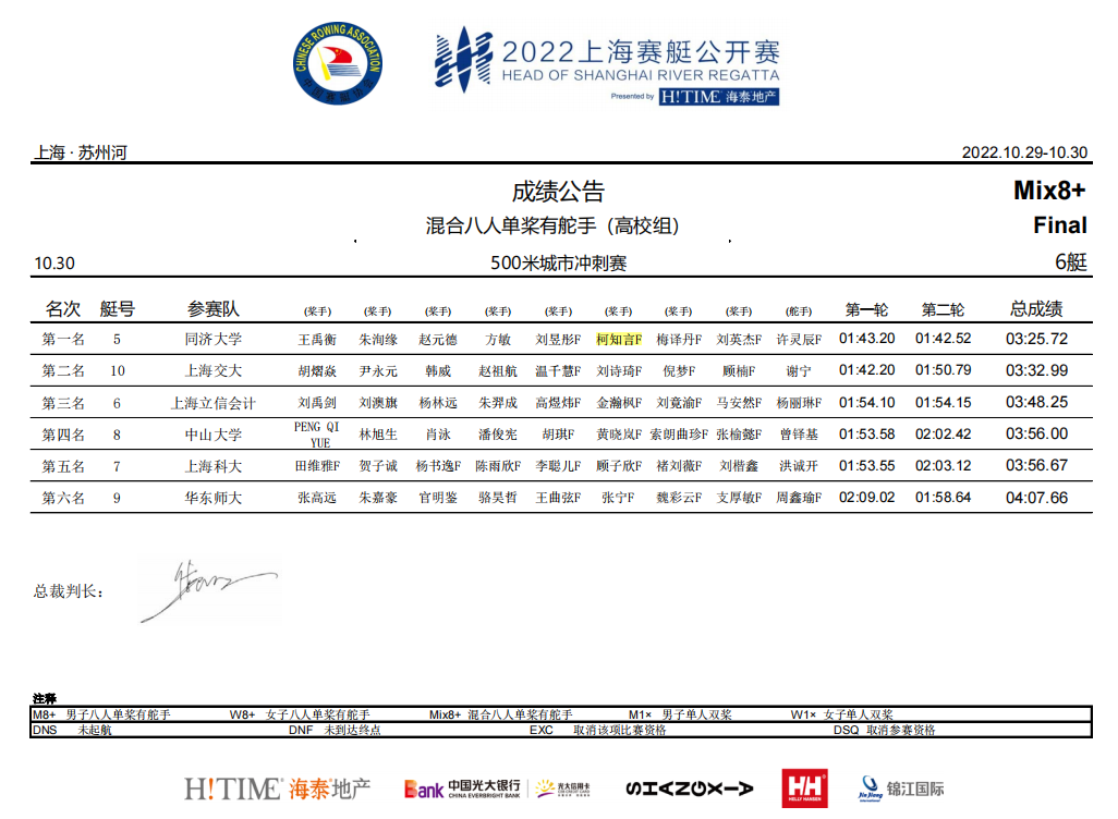 首届上海赛艇公开赛,同济赛艇队获Mix8+高校组冠军