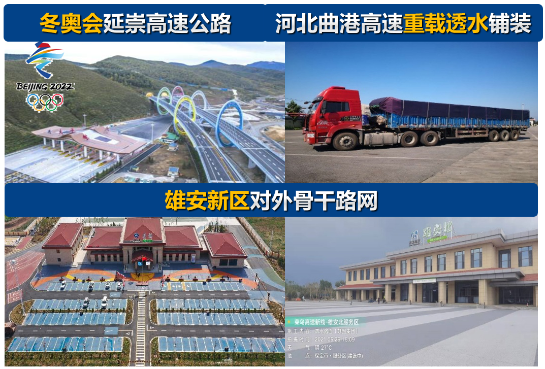 李辉团队将生态道路技术应用于冬奥会延崇高速公路、河北曲港高速重载透水铺装、雄安新区对外骨干路网