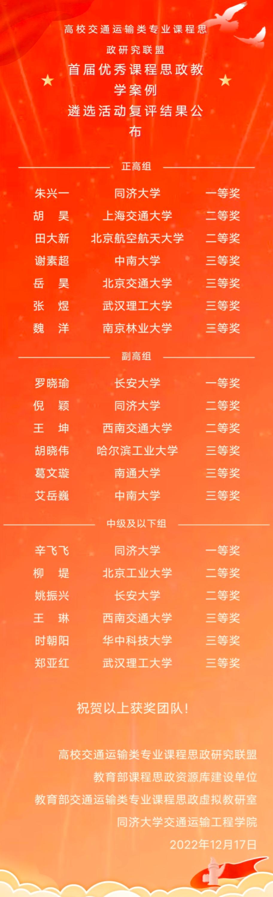 课程思政优秀案例遴选活动每年将持续举办,并持续出版课程思政案例集系列教材,欢迎兄弟高校加入高校交通运输类专业课程思政研究联盟!