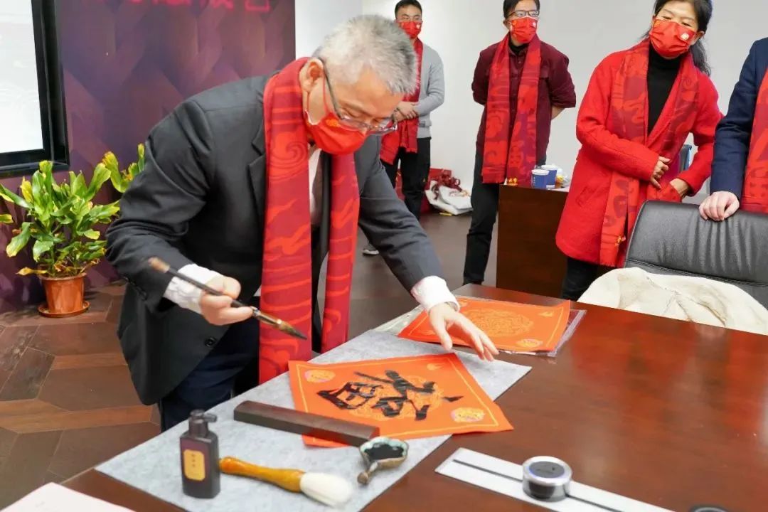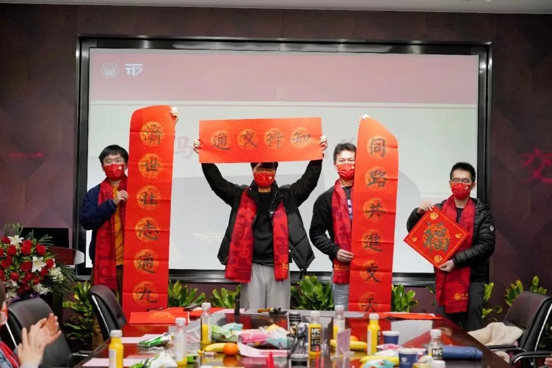 座谈会特别增加了富有中华传统文化意味的师生互动环节。凌建明经理挥毫书写“福”字送给同学们,祝福同路人们2023年“兔”飞猛进、大展宏“兔”;硕士研究生郭曜玮书写春联一幅送给学院,祝福交通运输工程学院蓬勃发展、蒸蒸日上。
