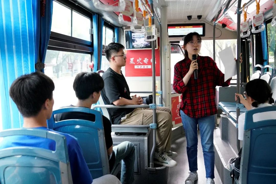 此次星火燎原:主题教育赋能“交通强国·思政进公交”主题活动,采用沉浸式的讲解活动形式,让同学们走出校园,乘坐专线班车,聆听红色故事,近距离感受红色故事背后的信仰。
