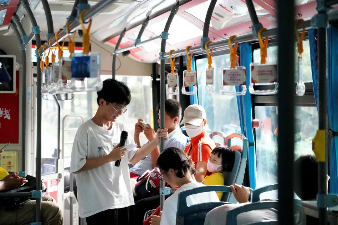 在这一方小小的车厢内,汇聚着不同年龄、不同性别、不同身份的一群人,大家都沉浸于一篇篇感人至深的红色故事里,这也从侧面反映出这样别致的讲解形式能够很好地吸引乘客注意,更好地传播红色故事,增强党史教育效果。