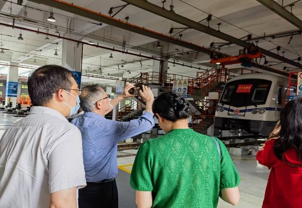签约仪式前,大家参观了浦汇车场,随后参观了3C大楼,在地铁早高峰演播厅合影留念,深入了解上海轨道交通路网运营调度指挥中心的建设和运营情况。