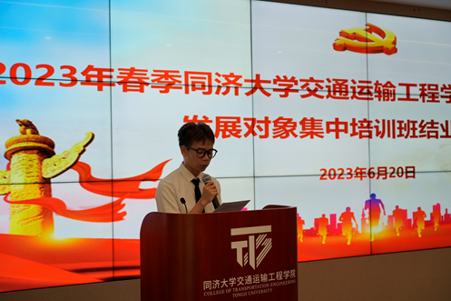 党委副书记杨志丹围绕学习贯彻习近平新时代中国特色社会主义思想主题教育,以《交通强国征程中的时代担当》为题,为全体入党积极分子、发展对象讲专题党课。他引用了《习近平总书记致云南大学建校100周年的贺信》以及《习近平总书记给中国农业大学科技小院的同学们的回信》,希望同学们始终坚持爱党报国的赤子情怀,努力成为无愧于时代、无愧于人民的人,用求实创新点燃青春梦想,争当走在时代前列的奋进者、开拓者、奉献者,在知行合一中练就过硬本领,做到与新时代同向同行、努力成为可堪大用、能担重任的栋梁之材。